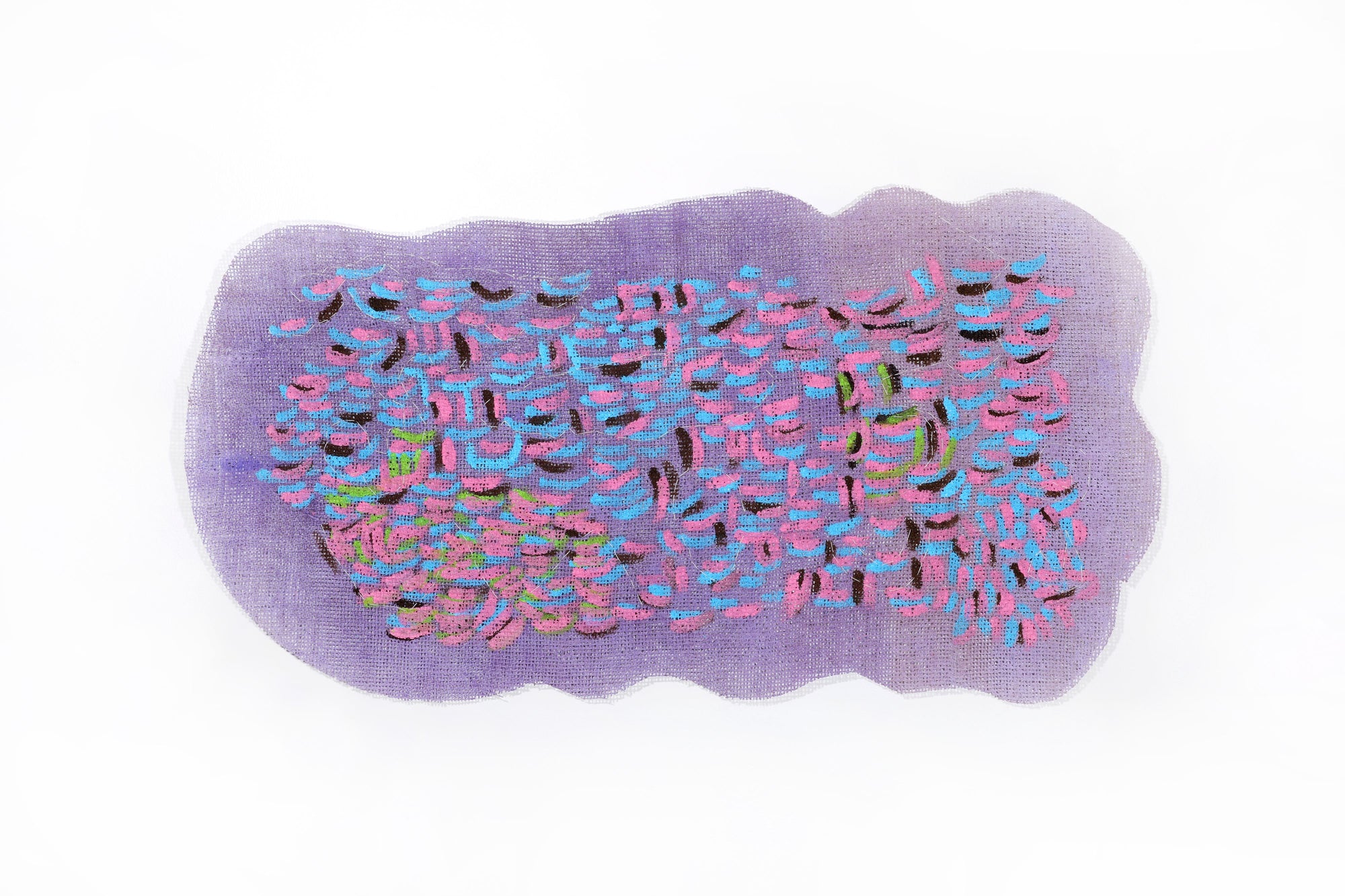 2025, Hessian, acrylic, wool and cotton, 61 x 92cm
